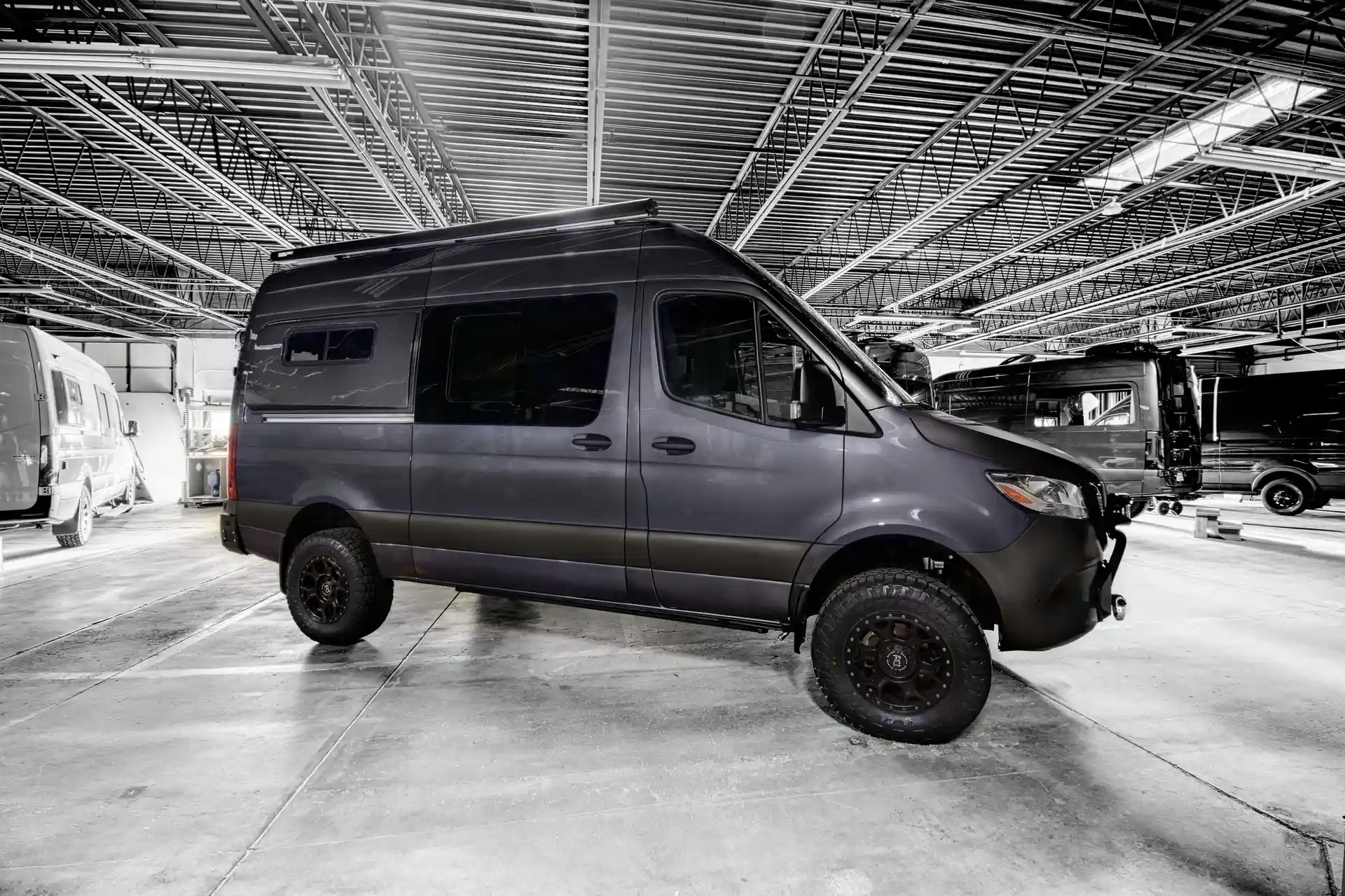 Named after the Hawaiian word for whale, this 2021 Mercedes Sprinter 144" 4x4 features matte black Infiniti ColorCore Formica cabinetry, a stainless steel countertop and sink, and a split platform queen bed. Extensively outfitted for off-road with a CATUMED bumper, Warn winch, Baja Designs lighting, Backwoods rear bumper, and Van Compass suspension.