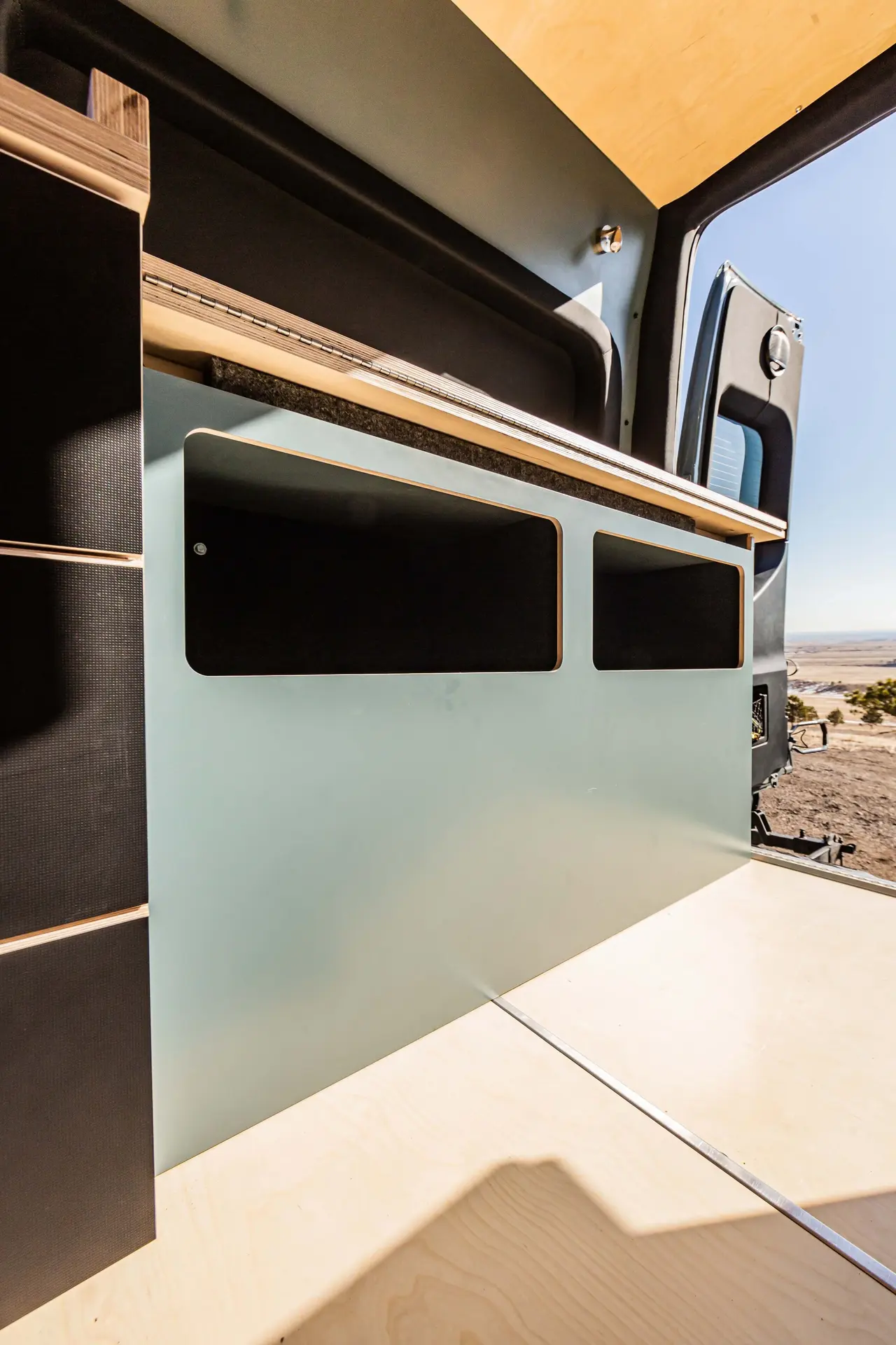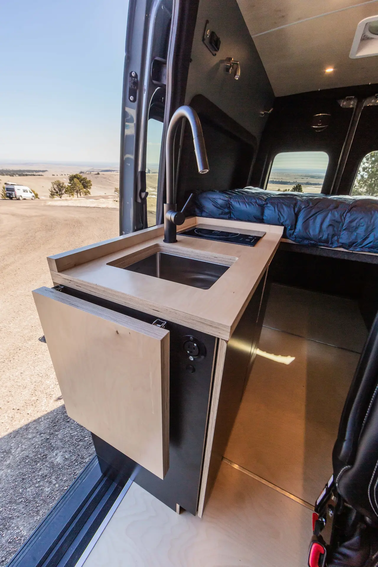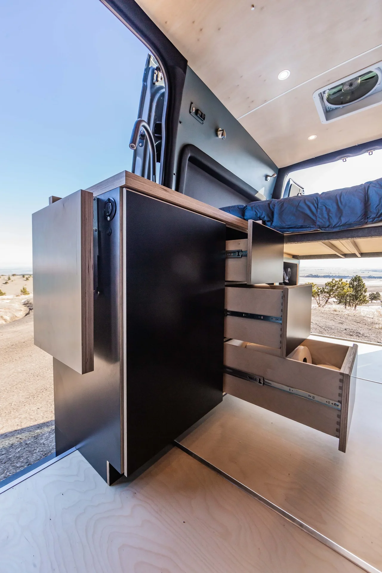 A fully equipped 2019 Freightliner Sprinter 144" 4x4 High Roof incorporating Vanlife Customs' best systems — upgraded Fox suspension, robust electrical infrastructure, and premium comfort amenities. Features a 2-person flip-up seat with 3-point belt and child latch system, making it family-ready. Only approximately 3,000 miles at time of build.